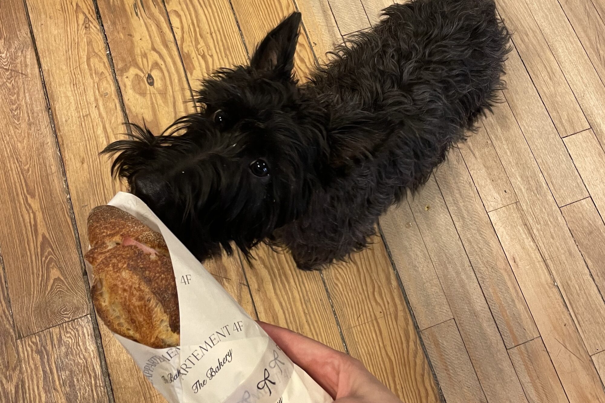 12:35pm, West Village: L’Apartment 4F is an excellent French bakery that found a grateful audience in its original location in Cobble Hill, Brooklyn before opening a window in the West Village. These Big Apple croissants, people say, rival those of the City of Light. I can neither confirm nor deny this chatter because, when we popped over and queued up for lunch, I got the Jambon Beurre sandwich. I had worked up quite an appetite, and it was a great sandwich. There was a short line when I stopped by in the afternoon, but the baristas were friendly and Bonnie seemed happy to pass the time smelling (but not eating) some ham.