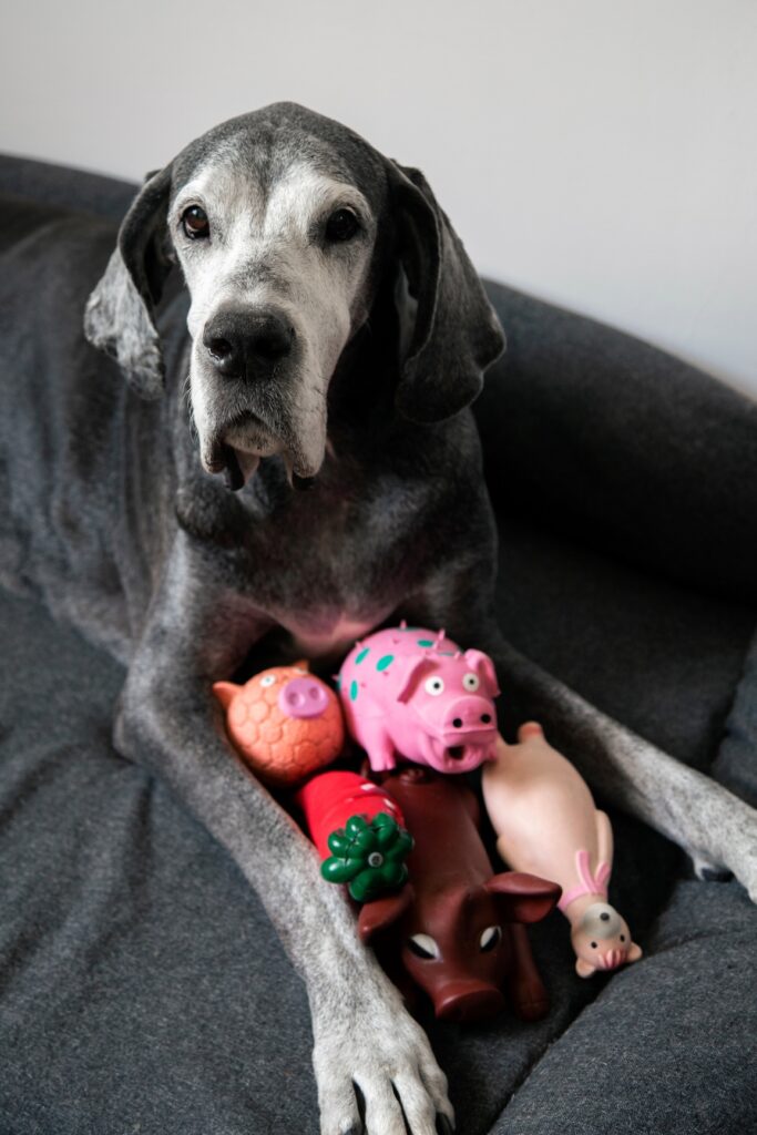 Shryock learned this lesson the hard way when she, a parent with small children, adopted a ball-obsessed four-year-old German Shepherd. “Within two minutes of coming into the house, it was like the ball massacre. Moose just took out every ball, and I had two little boys that were like, ‘Oh my God, this dog.’” The dog’s toy obsession extended beyond balls to helium balloons and even Hot Wheels cars, and Shryock had to make sure to keep those things out of the house.