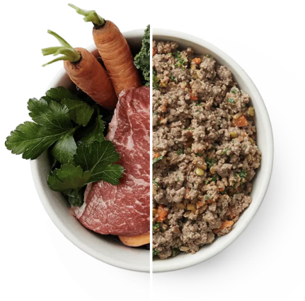 A vet-designed plan is customized to your dog’s individual needs. Meals are pre-made and pre-portioned to their calorie needs based on the profile you create.
